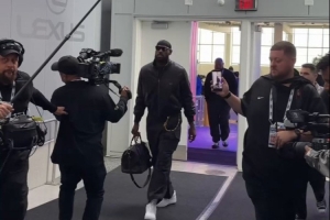 体育资讯2月16日讯 今日,湖人官推晒出一段詹姆斯抵达本届全明星赛现场的视频片段。