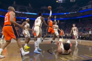GIF-马瑟林抛投造犯规 勇士挑战成功