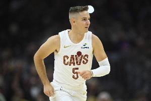 骑士球员梅里尔上半场手感不佳,外线出手三分频频打铁,也没有其他数据的贡献。