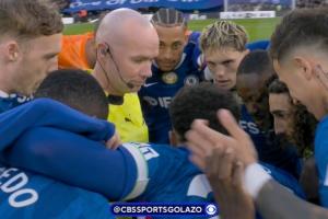 今天,裁判保罗·蒂尔尼发现自己身处切尔西球员的围圈之中。由于是纽卡开球,裁判通常会来到中线附近控制球权,以防止任何潜在的问题。然而,切尔西却擅自决定让主裁蒂尔尼站在他们中间,进行围圈仪式,此举也可谓是相当炸裂。