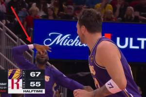 GIF-詹姆斯“嘲讽”式动作与东契奇互动