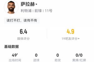 体育资讯01月25日讯 英超第23轮,利物浦暂1-2伯恩茅斯,萨拉赫的半场数据如下,其中他有2次射门1次射正,丢失13次球权↓