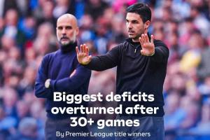 英超历史30轮后的最大分差逆转