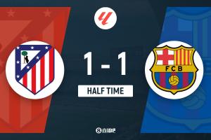 半场-巴萨暂1-1马竞 小西蒙尼破门拉什福德扳平冈萨雷斯染红