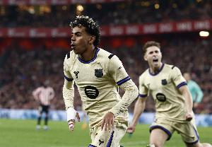 数据统计显示,本赛季西甲联赛亚马尔进球和助攻数均已上双,是五大联赛第三位做到这一点的球员。