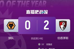 体育资讯02月01日讯 英超第24轮,狼队0-1不敌伯恩茅斯,遭遇联赛4场不胜。