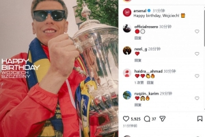 阿森纳官方社媒晒出什琴斯尼的生日海报,配文:“生日快乐,沃伊切赫!”