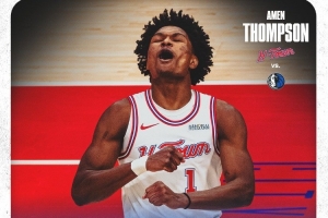 赛后,火箭官方晒出阿门·汤普森本场的数据海报,配文写道:“在休斯敦表现出色,几乎拿下了三双数据!”